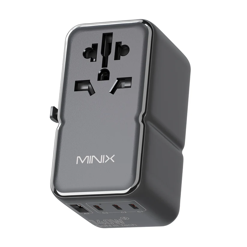 The Minix Universal Travel Adapter leverages advanced GaN III technology for efficient, high-speed charging in a compact design, ensuring maximum portability and performance wherever you go.
